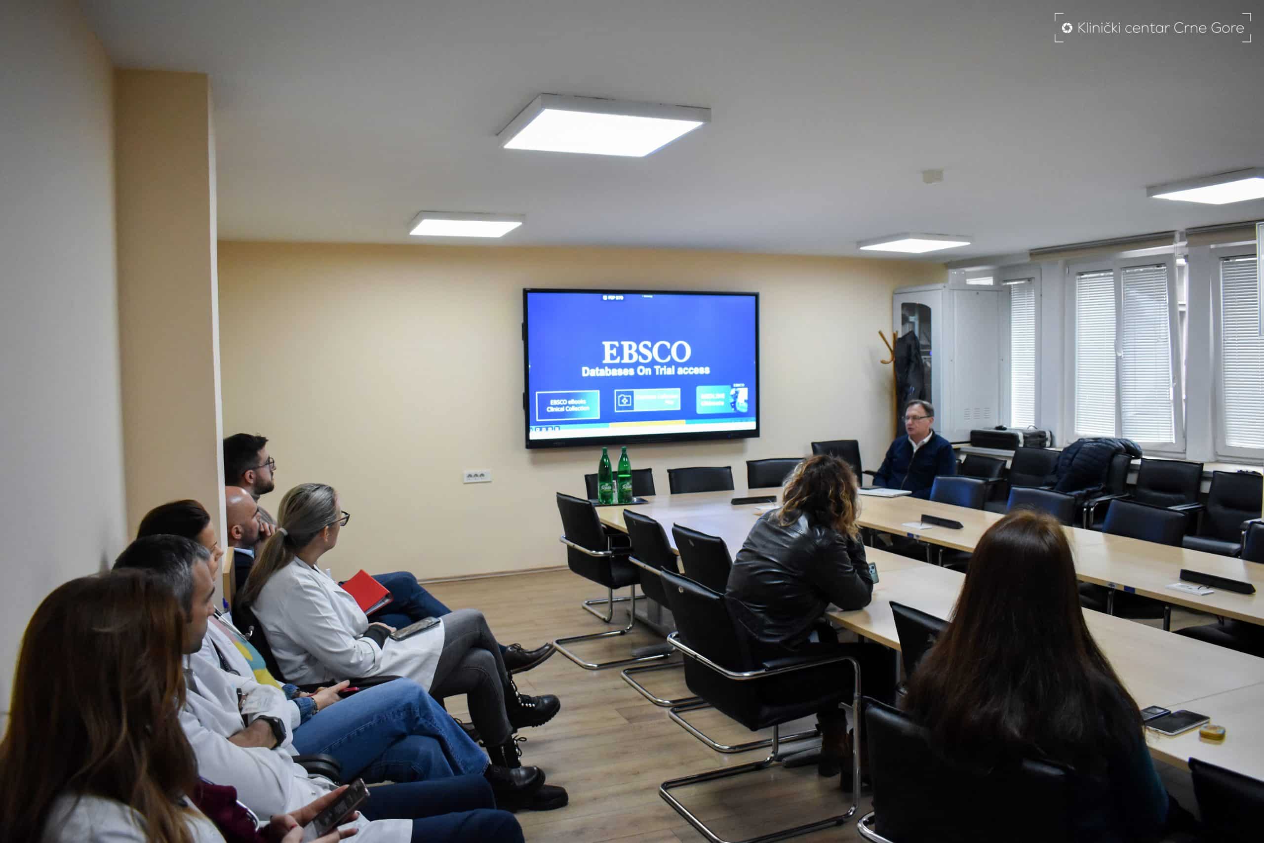 U sali za sastanke Kliničkog centra Crne Gore, 4. decembra održana je specijalizovana obuka posvećena naprednom korišćenju EBSCO baza podataka. Obuku je vodio Tibor Foltinski, EBSCO trener iz Praga, u saradnji sa distributerskom kućom„Neolibris” iz Beograda.