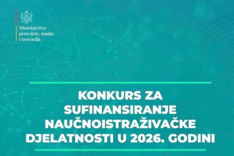 Ministarstvo prosvjete, nauke i inovacija raspisuje Konkurs za sufinansiranje naučnoistraživačke djelatnosti u 2026. godini, sa ciljem jačanja naučnoistraživačkih kapaciteta Crne Gore. Ukupan iznos finansijskih sredstava opredijeljen za potrebe realizacije Konkursa iznosi 465.000 €, raspoređenih na 7 tačaka Konkursa i to: