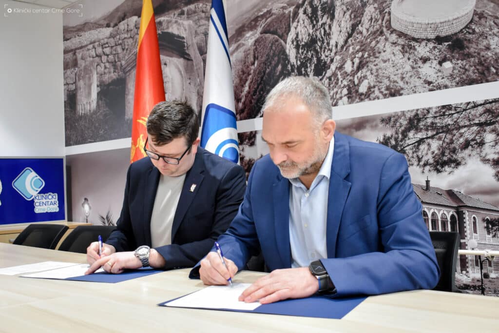 Potpisivanju ugovora prisustvovali su direktor Kliničkog centra Crne Gore, dr Aleksandar Radović i direktor Montenegro Duty Free, gospodin Dunham Christopher Michael.