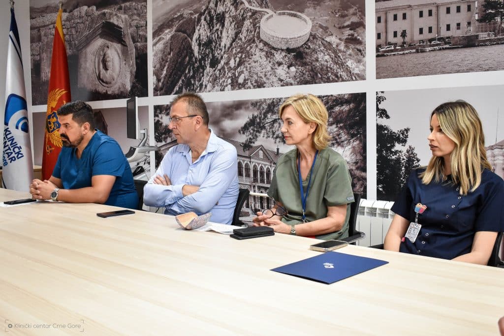 Direktoru KCCG-a, dr mr sc. Aleksandru Radoviću donaciju je uručio Tarik Telaćević, direktor ALK Montenegro.